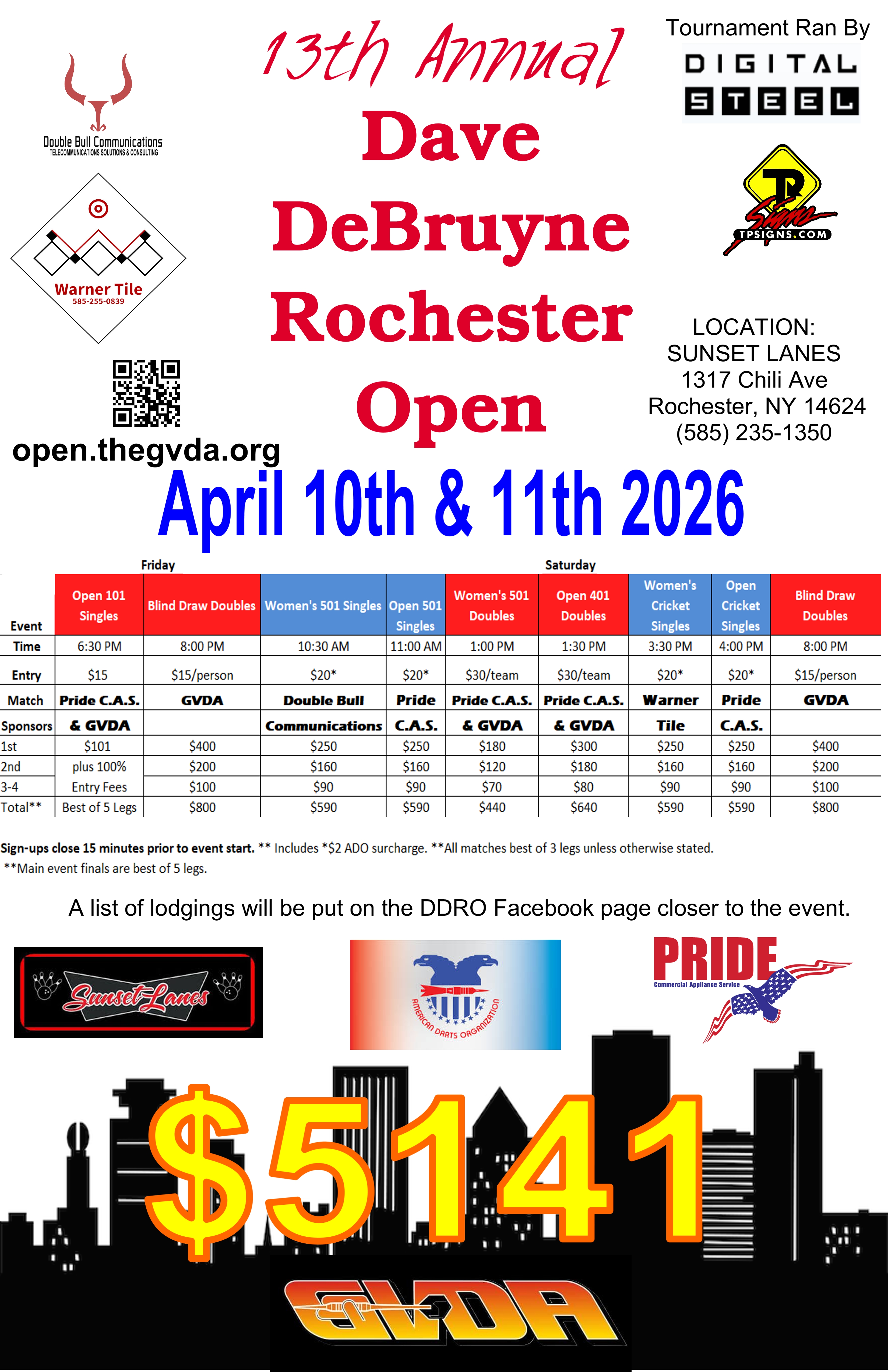 The Rochester Open payouts continue to top our advertized figures as we build it back up. We are also once again running two $800 blind draws in the evenings.